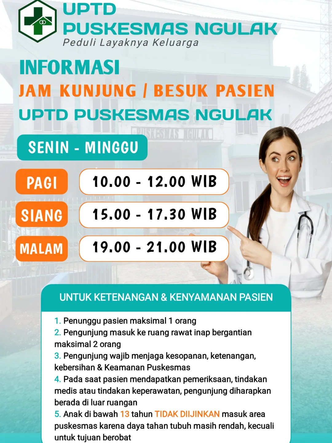 Tidak lupa juga untuk penuhi kebutuhan tidur harian dan bersegera untuk melakukan pemeriksaan ke fasilitas kesehatan terdekat apabila mengalamigejala penyakit, agar bisa segera mendapatkan penanganan sedini mungkin dari petugas kesehatan.